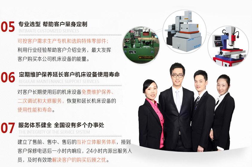 a) 本公司在全國(guó)20多個(gè)省市設(shè)立了銷售服務(wù)辦事處,可為客戶提供近距離的售后服務(wù)。購(gòu)買本公司的線切割機(jī)床產(chǎn)品,調(diào)試人員隨機(jī)到達(dá)現(xiàn)場(chǎng),協(xié)助客戶安裝。